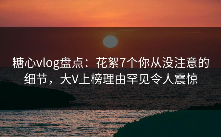 糖心vlog盘点:花絮7个你从没注意的细节,大V上榜理由罕见令人震惊